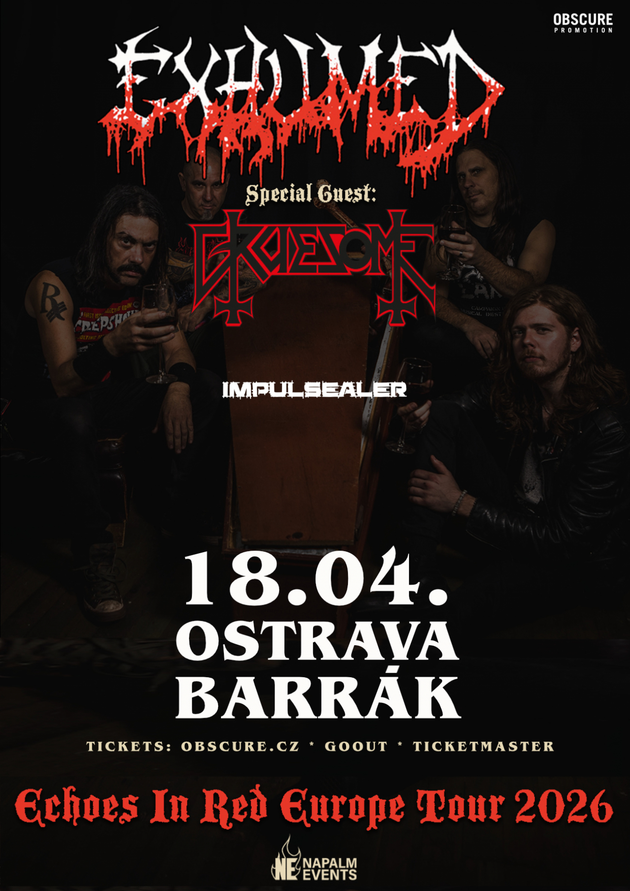 Dvě tváře deathmetalu, dvě obrácené strany mince, jedna noc. Na Ostravu se řítí Exhumed a Gruesome. Ať už patříte mezi příznivce brutálního přístupu inspirovaného goregrindem, nebo vás zajímá spíše progresivnější přístup, tento večer je přesně pro vás – obě kapely spojuje fascinace hororovou tématikou, krvavými motivy a atmosférou klasických gore filmů. Už 18. dubna v Barráku!