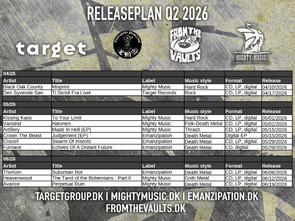 | Den Syvende Søn | Ti Skridt Fra Livet | Target Records | Rock | CD, LP, digital | 04/17/2026 |