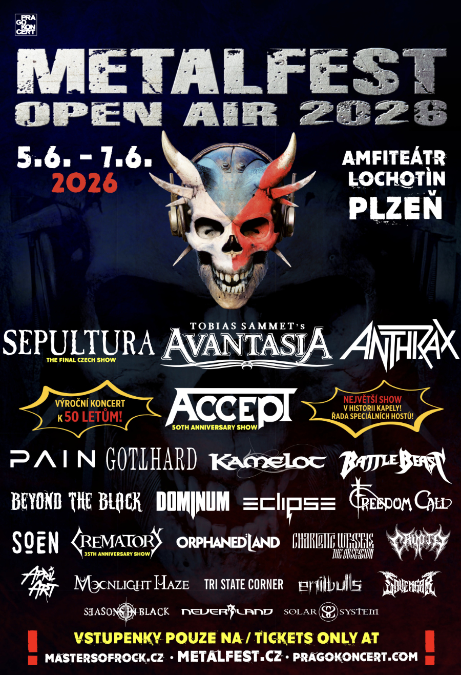 ACCEPT – 50th Anniversary show – německá heavymetalové legenda ACCEPT oslaví na METALFESTU 2026 své fantastické, 50. výročí! U příležitosti tohoto svého obrovského milníku, kapela oslaví své zlaté narozeniny nejen zcela unikátním výročním turné s velmi pečlivě vybranými městy, ale i výročním albem, které vyjde začátkem roku 2026! ACCEPT úspěšně formovali celé generace metalových hudebníků i fanoušků a se svým nezaměnitelným zvukem patří do metalové síně slávy! Na METALFESTU v PLZNI vás čeká fantastická metalová cesta časem v dechberoucí pódiové show. Zazní všechny největší hity a heavy-metalové klasiky i ty skladby, které byly hrávány naživo vzácně, nebo téměř nikdy! A možná se zde objeví i překvapiví hosté…